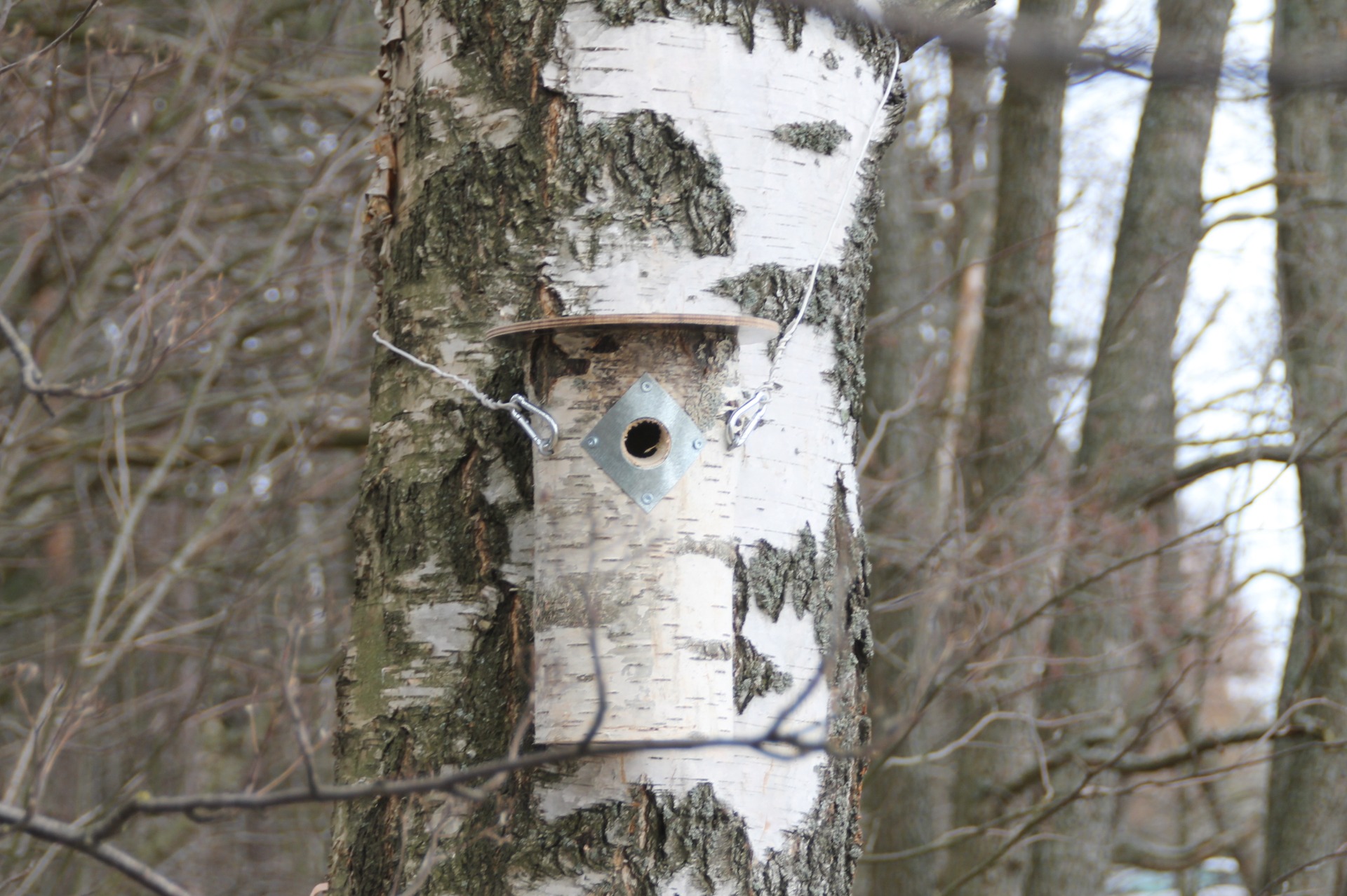 Kiinnityskorkeus: 1,5 - 2 m (ripustus korkeamalle, jos ihmiset kulkevat pöntön läheltä tai on pelkoa ilkivallasta).